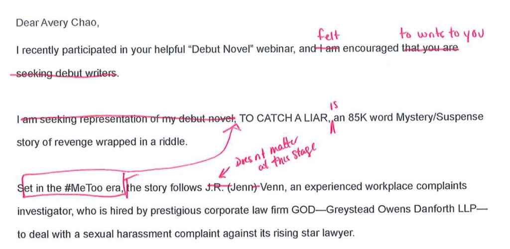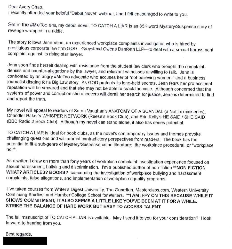 So once again, this is why your query letter has to be short, sharp, confident, and self-aware. So maybe with that in mind, you can all follow along with this and understand the danger zones.