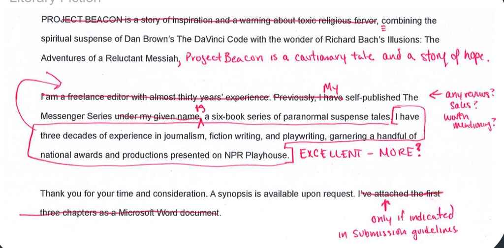 So once again, this is why your query letter has to be short, sharp, confident, and self-aware. So maybe with that in mind, you can all follow along with this and understand the danger zones.