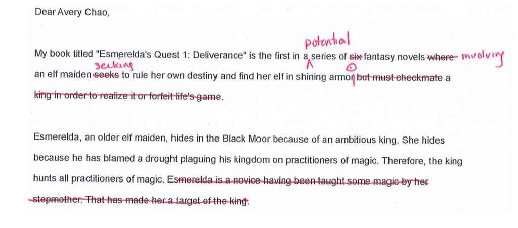 Bonus unseen marked-up submissions can be found on the Reedsy Blog.